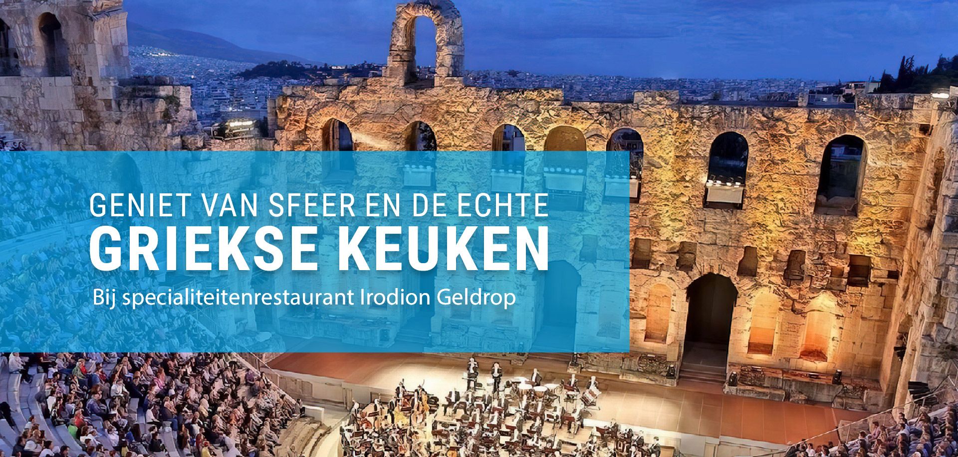 Grieks Restaurant Irodion is sinds jaar en dag een begrip in Geldrop. In een sfeer van Griekse gemoedelijkheid kunt u volop genieten van de vele specialiteiten die ons restaurant rijk is. Een enthousiast team van medewerkers zet zich graag in voor een smakelijke avond, en voorziet in al uw wensen. “Kijk eens om u heen… u waant zich in een authentiek stukje Griekenland op het Brabantse land. Wij wensen u een fantastische, smakelijke en onvergetelijke avond! En dat gaat zeker lukken! ” Met Smakelijke groeten,